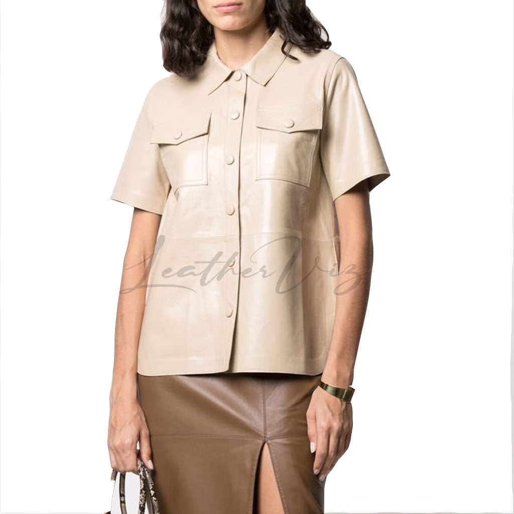 CLASSIC COLLAR WOMEN LEATHER SHIRT