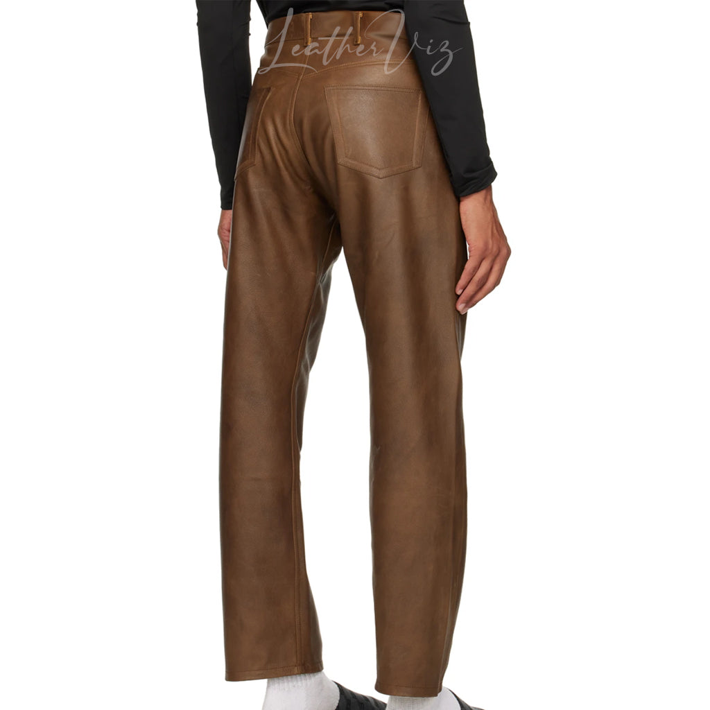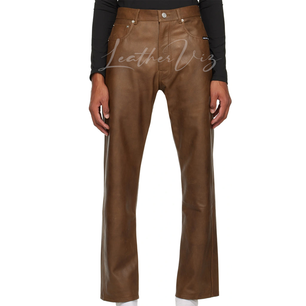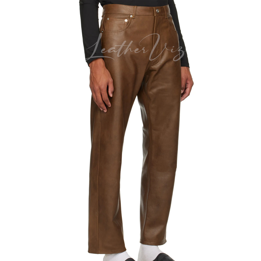CORPORATE STYLE BROWN MEN LEATHER PANTS