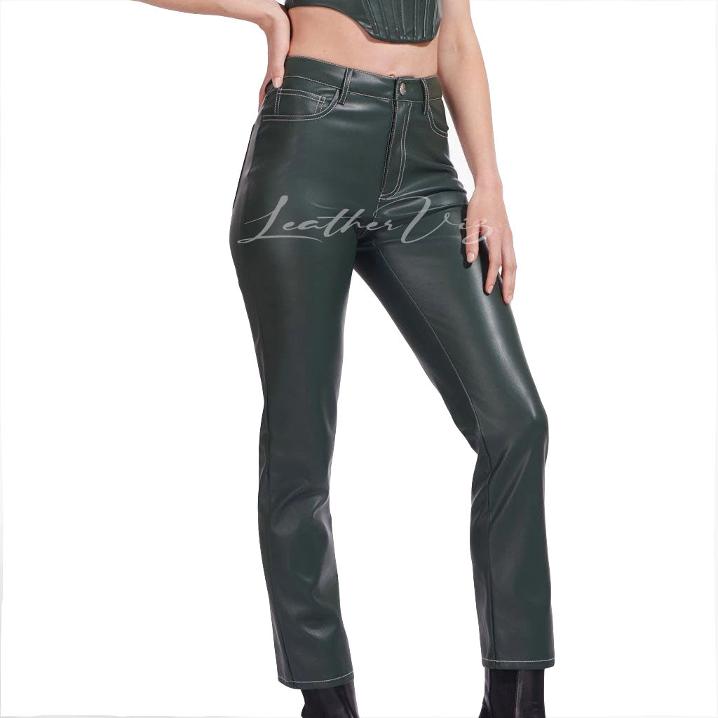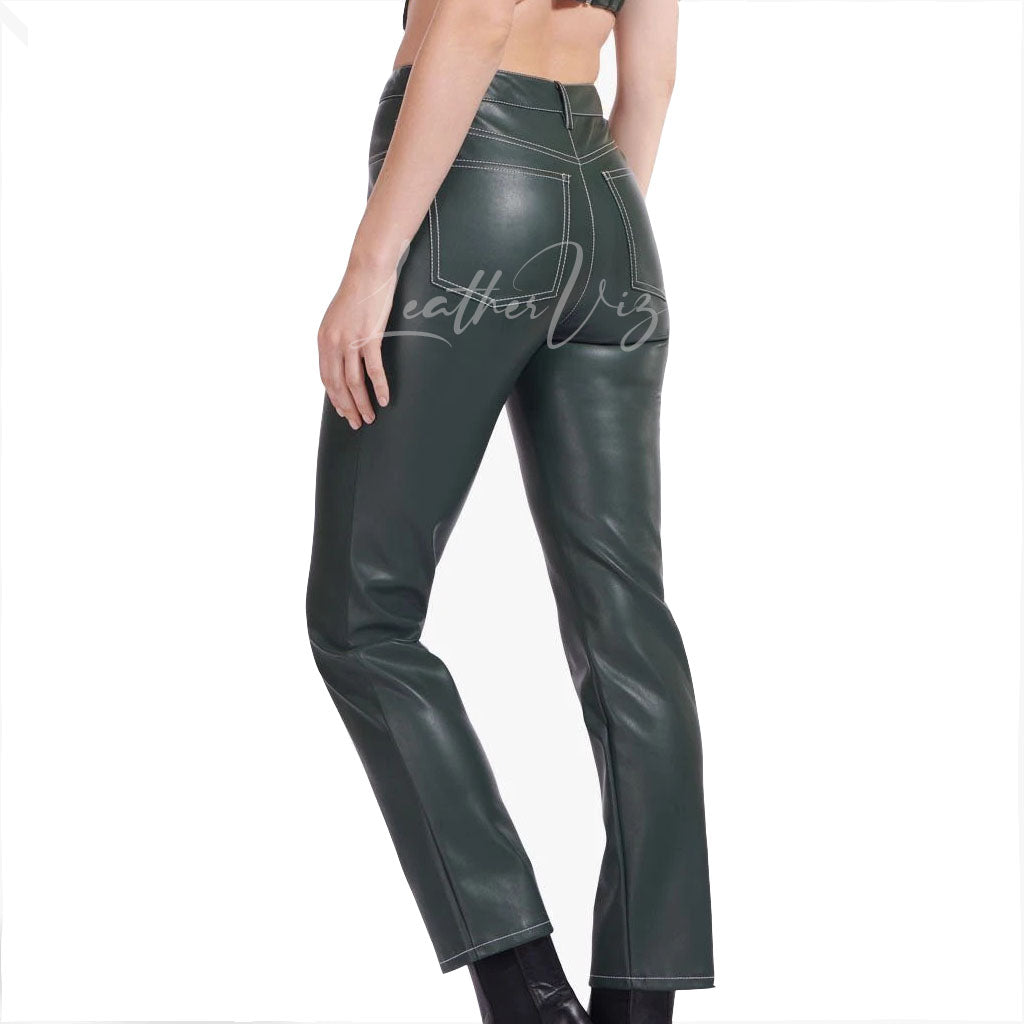DARK GREEN WOMEN LEATHER TROUSERS