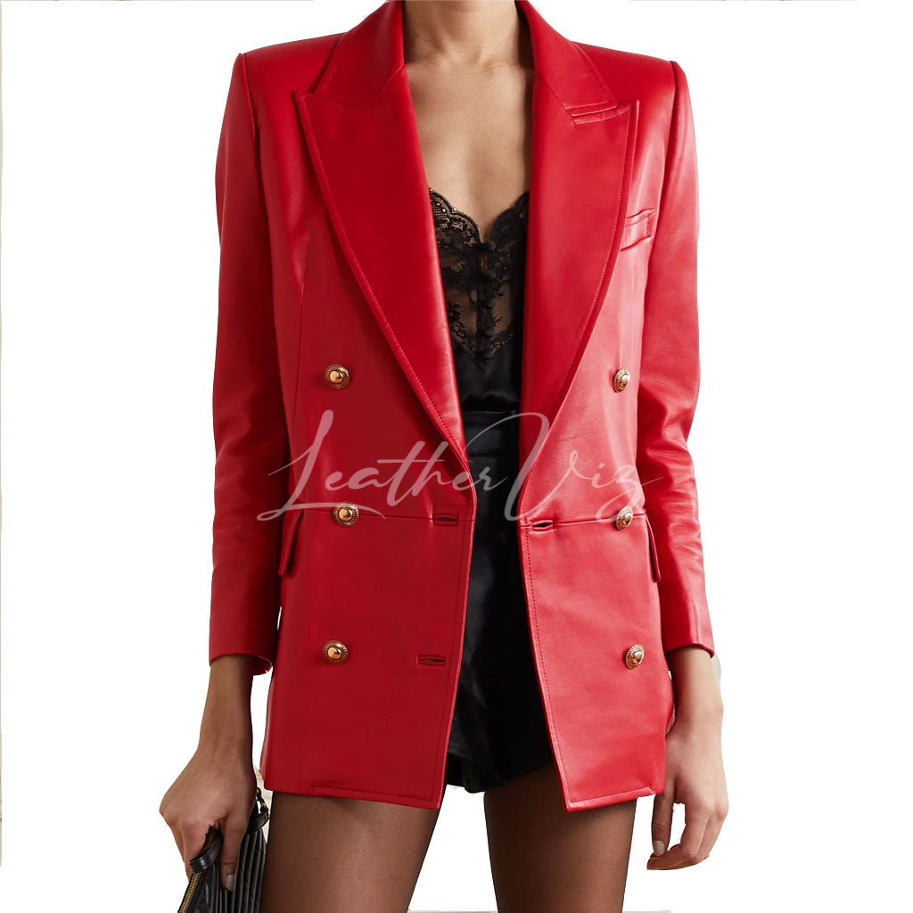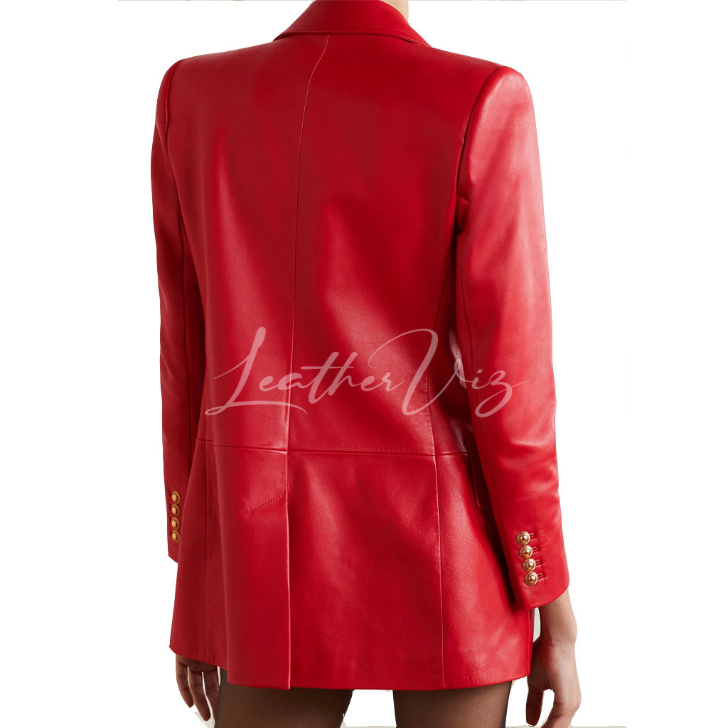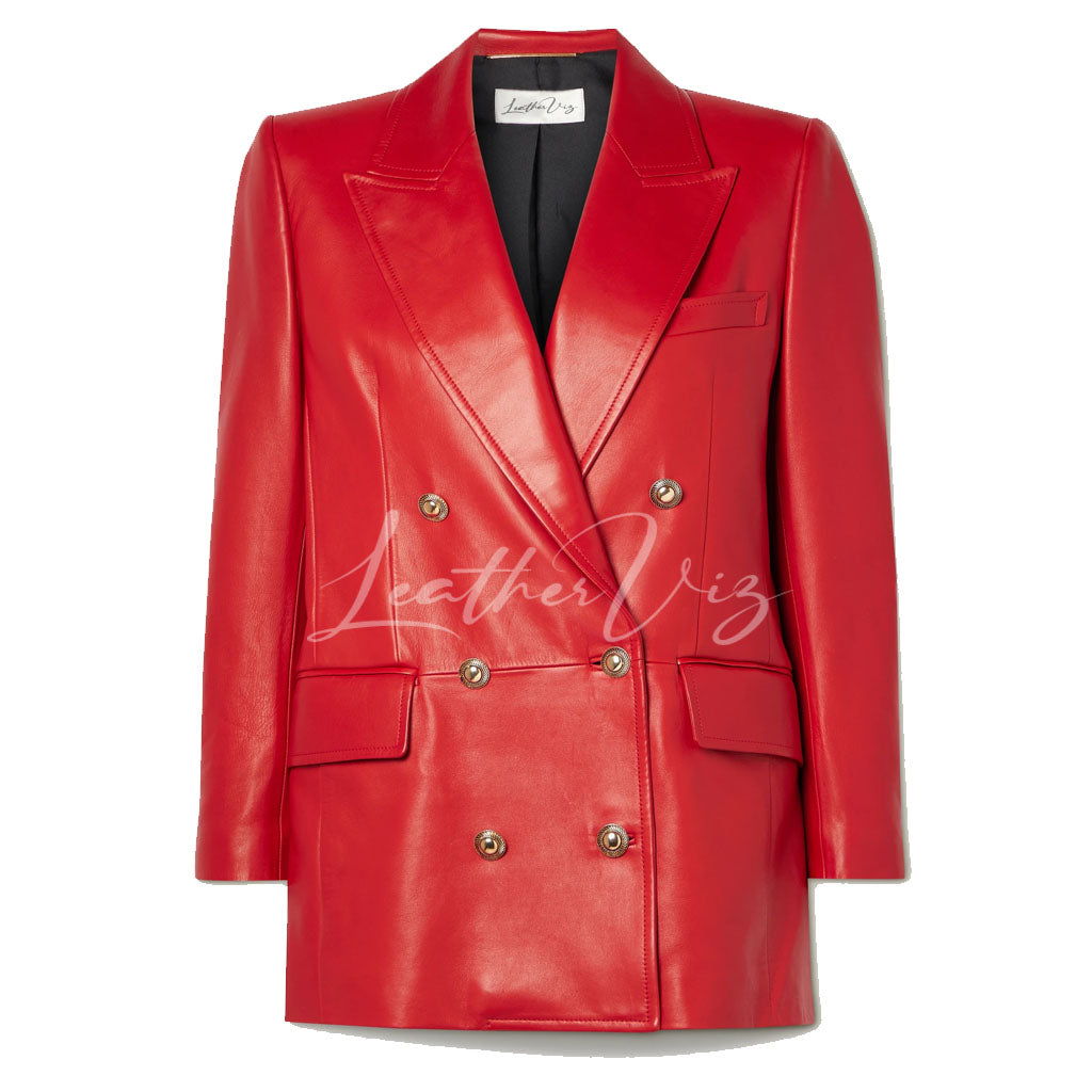 DOUBLE-BREASTED RED LEATHER BLAZER FOR WOMEN