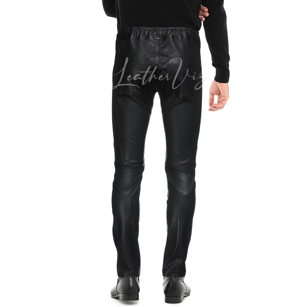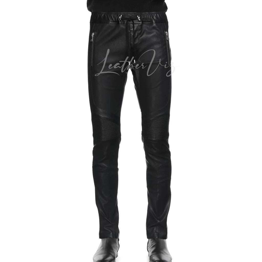 DRAW STRING WAIST MEN LEATHER TROUSERS