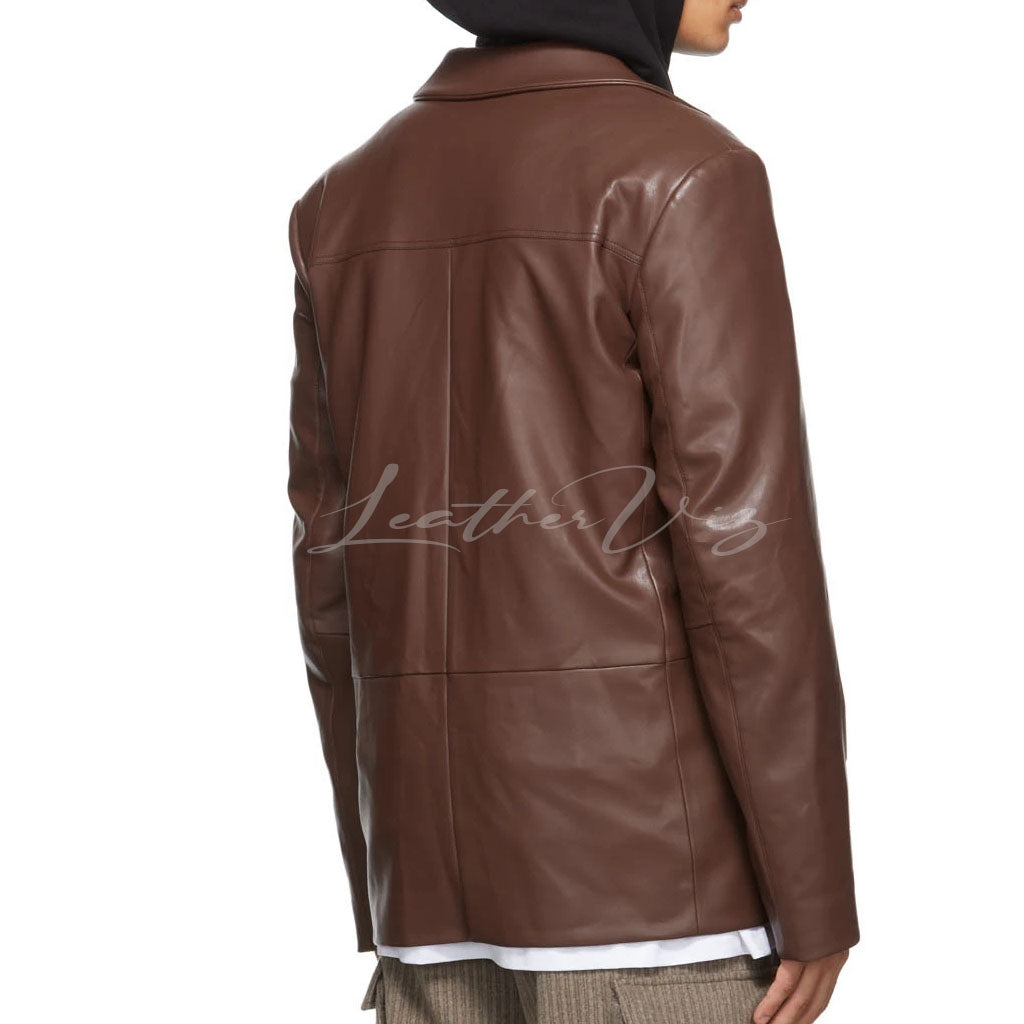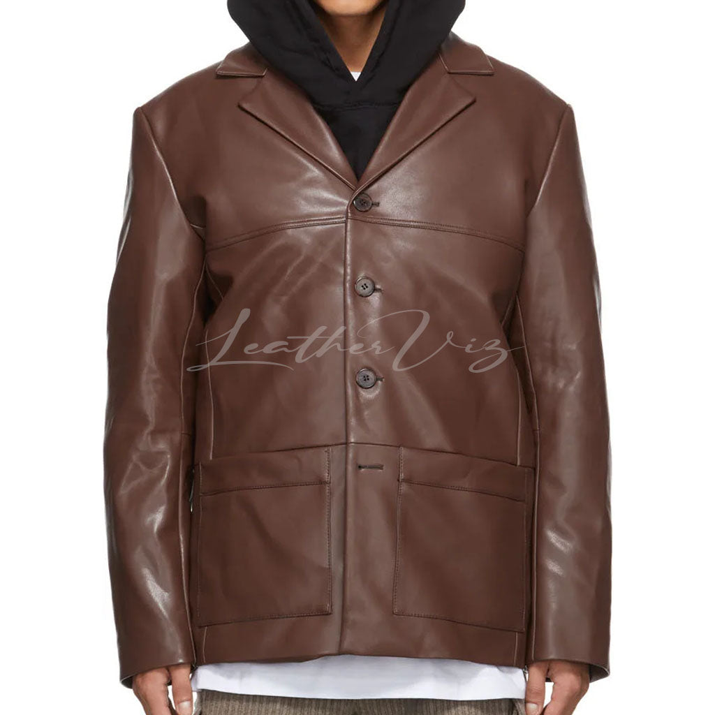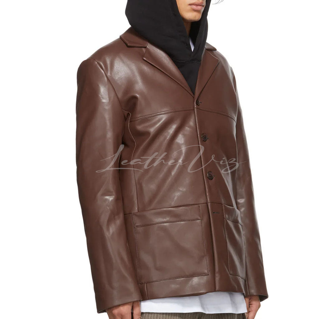 FOUR-BUTTON CLOSURE MEN LEATHER BLAZER