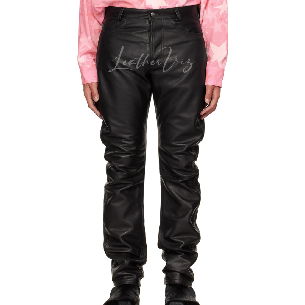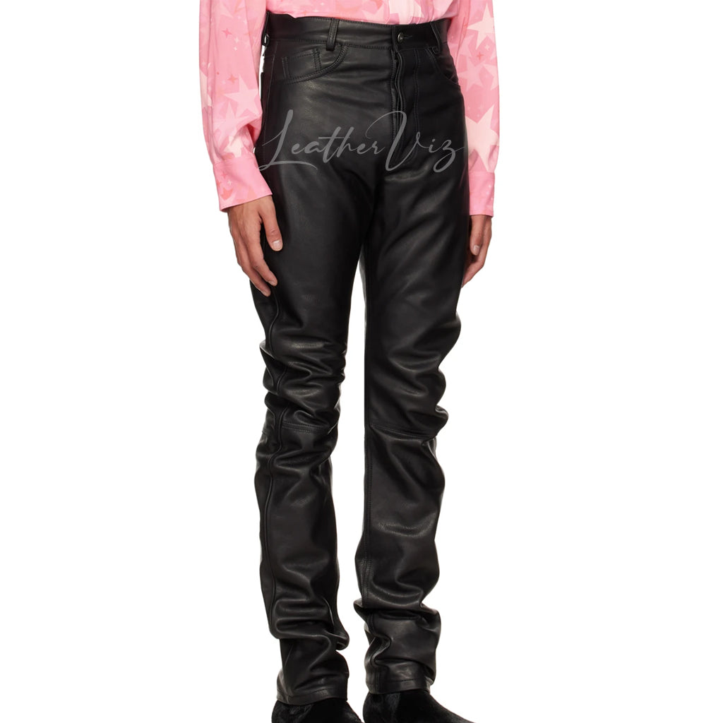 HIGH WAIST MEN LEATHER PANTS