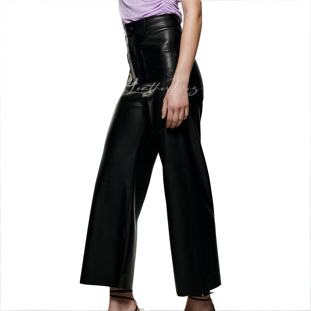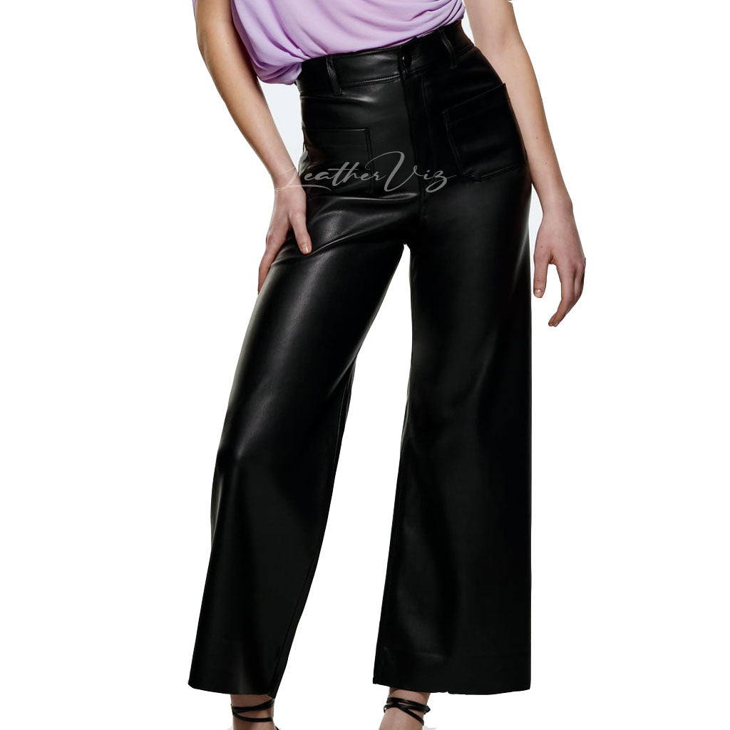 HIGH WAIST STRAIGHT LEATHER TROUSERS FOR WOMEN