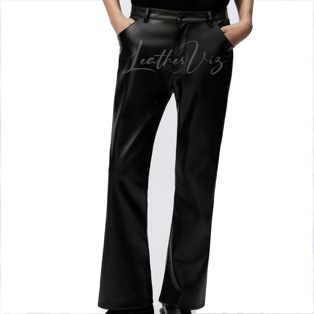 Get this classic style men black leather trousers which is made from lamb skin leather and featured with five-pocket design and has loose hem. It is a five-pocket design black leather trouser for men and has loops at waist. It has paneled detailing and fully lined. Also it is available in several colors and all sizes. So men get this classic style leather trousers now. Hurry up!!