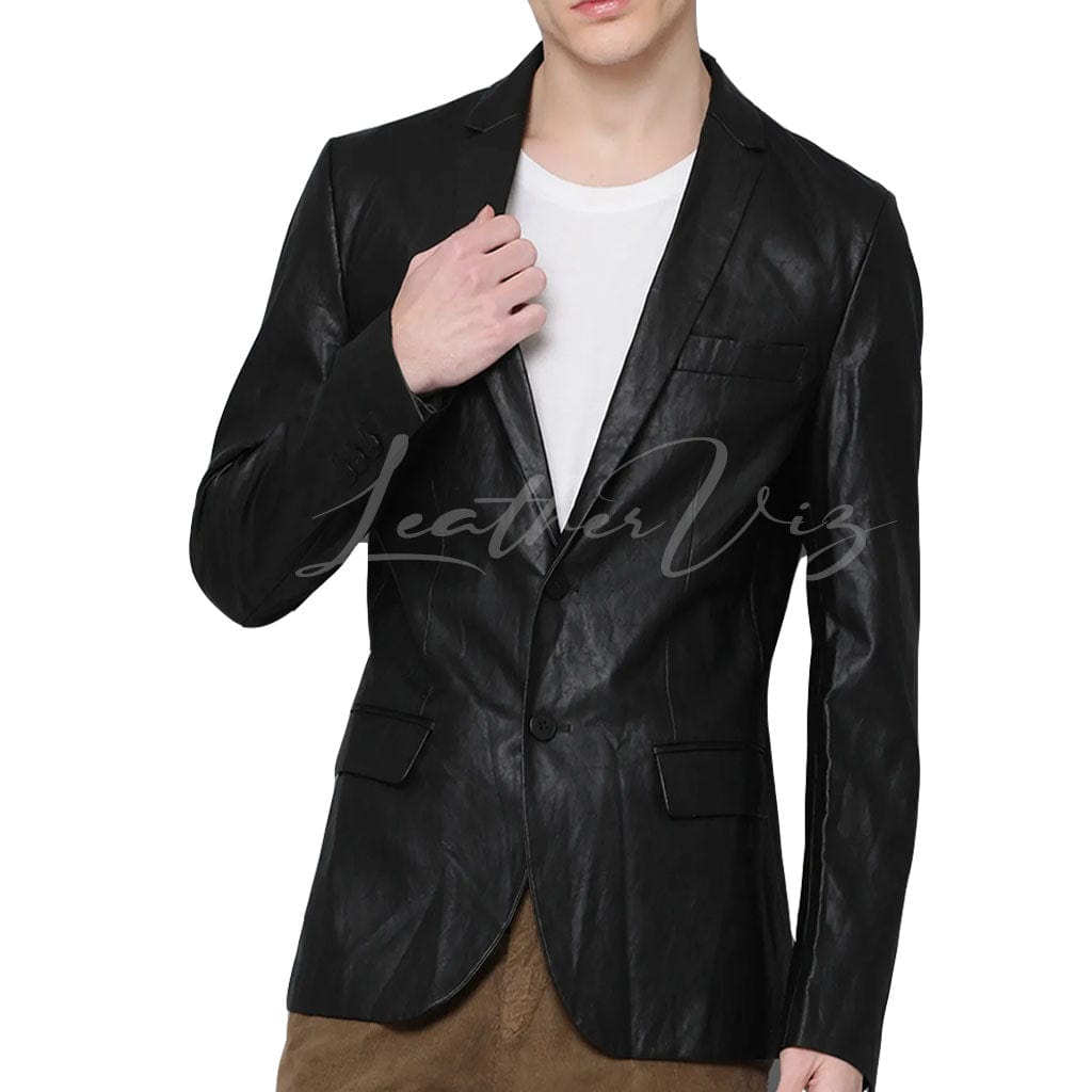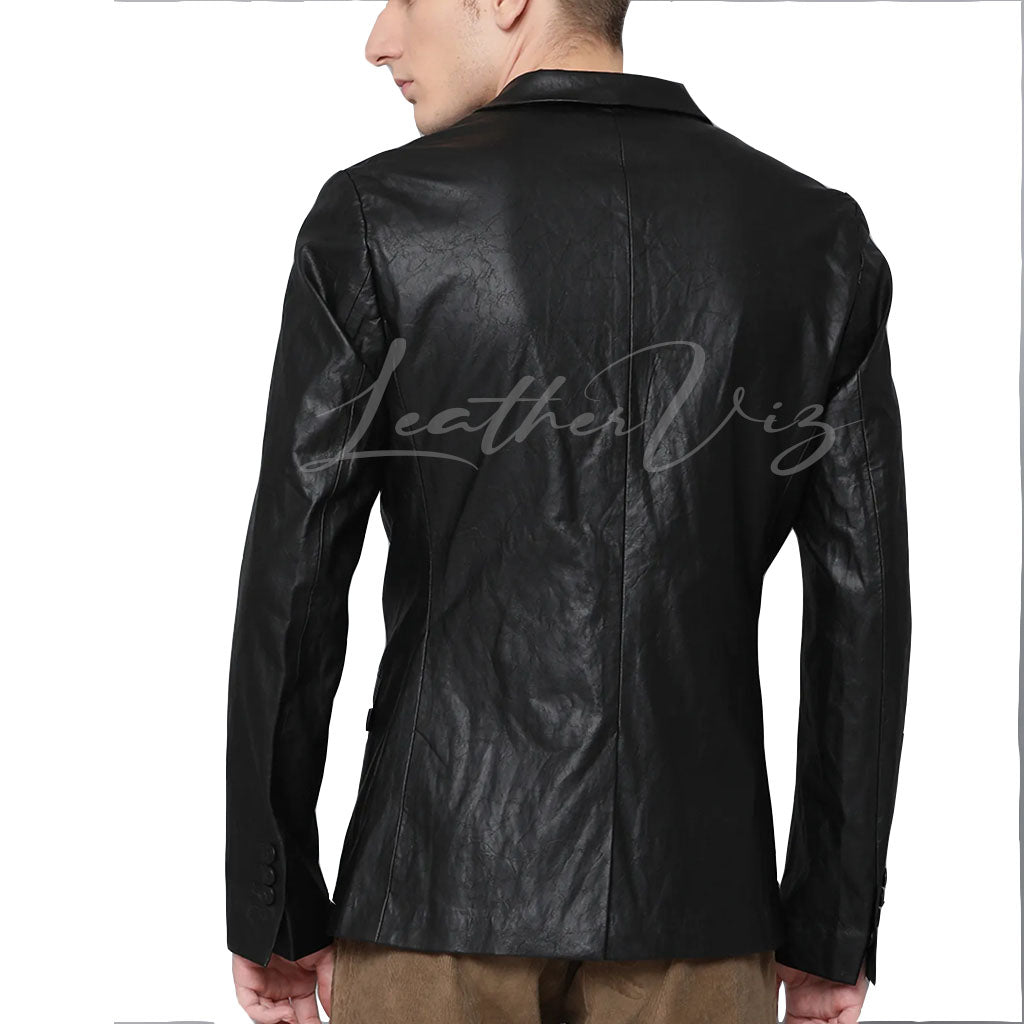 NOTCH COLLAR SINGLE BREASTED MEN LEATHER BLAZER