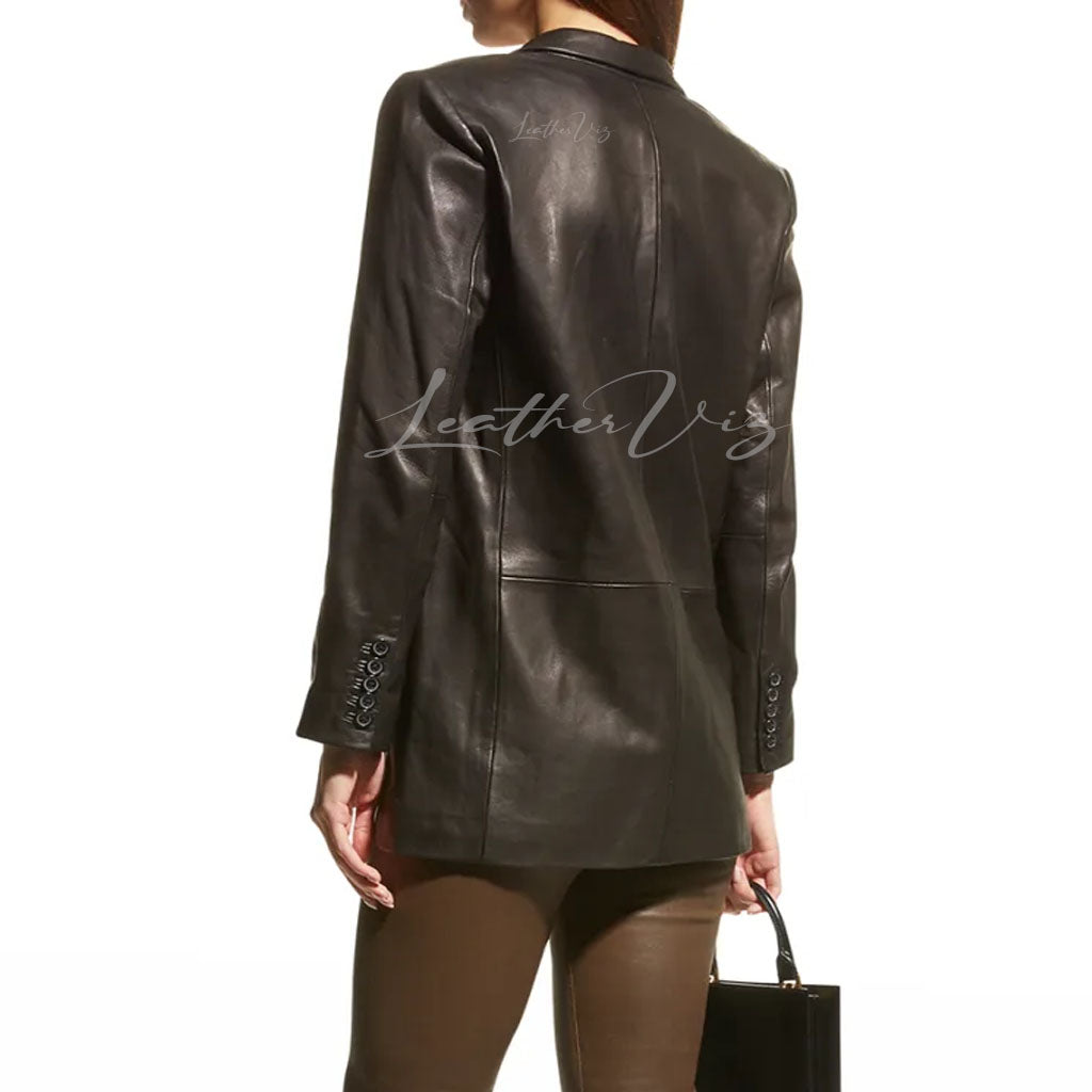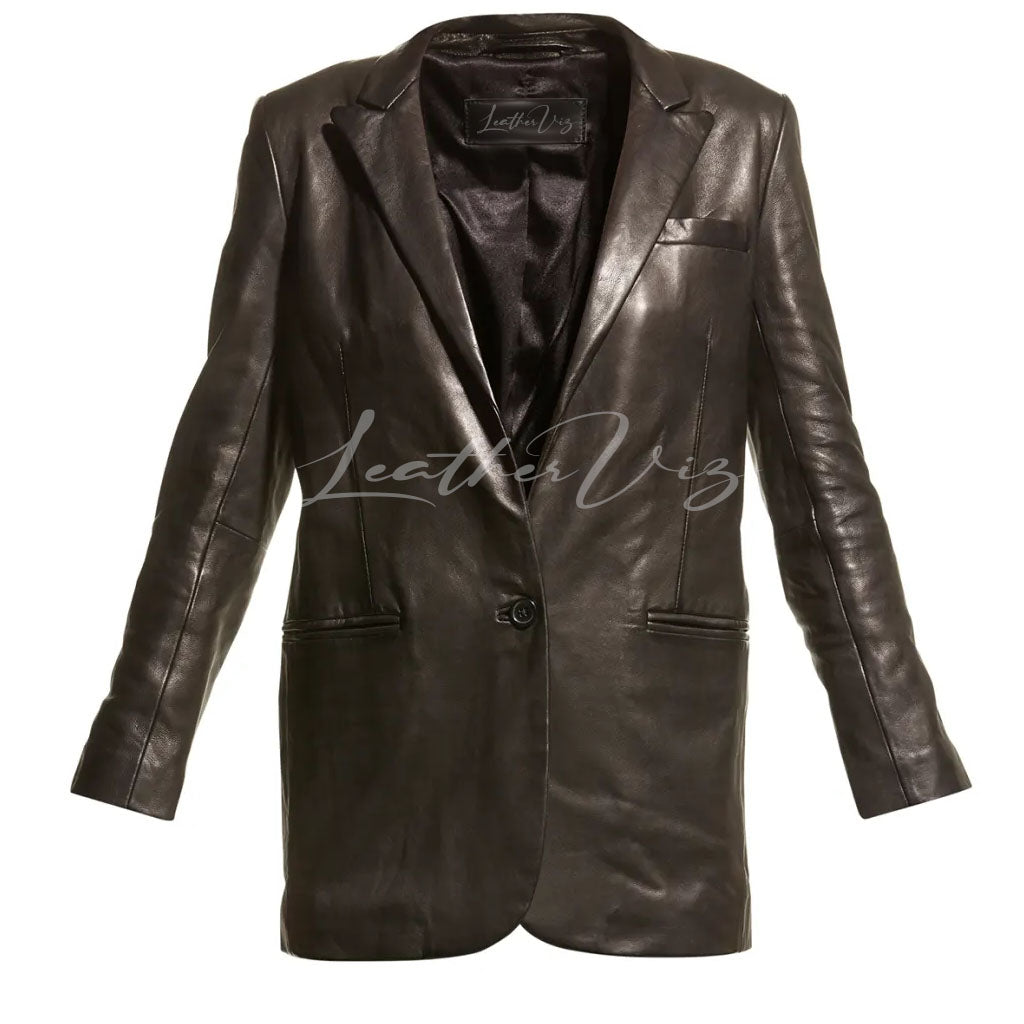 ONE-BUTTON FRONT LEATHER BLAZER FOR WOMEN