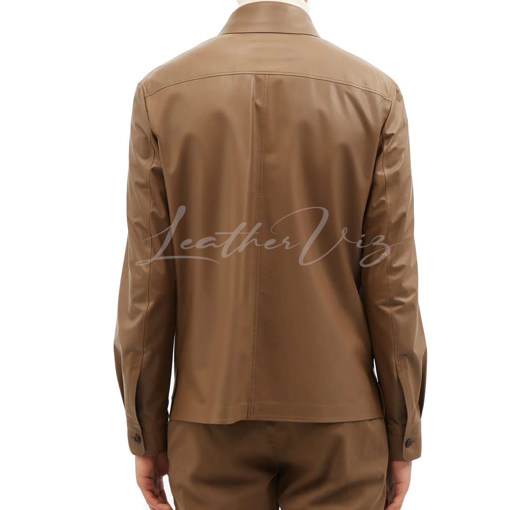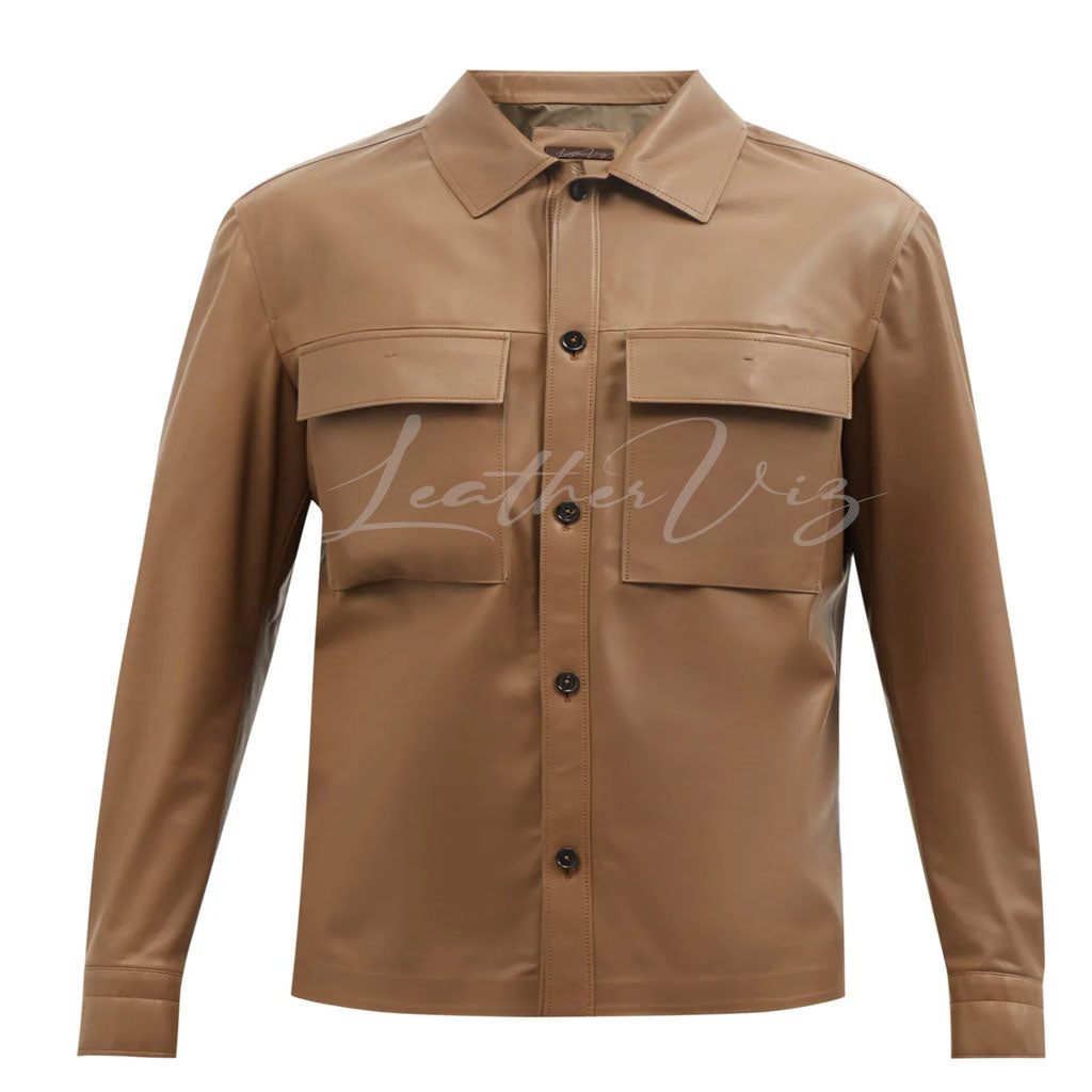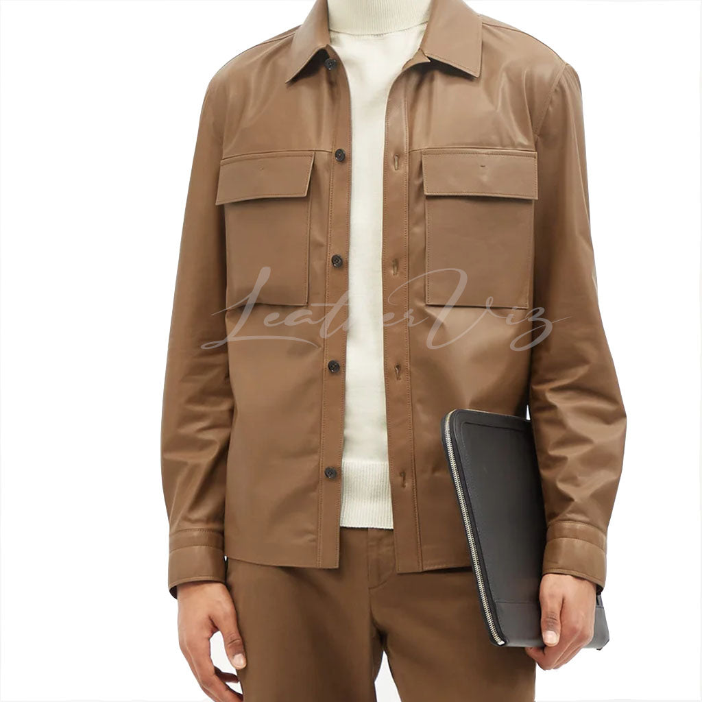PATCH FLAP POCKET MEN LEATHER OVERSHIRT