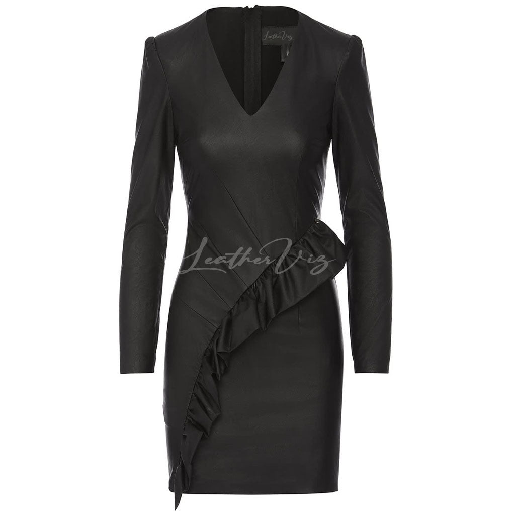 RUFFLED FAUX LEATHER PARTY DRESS FOR WOMEN