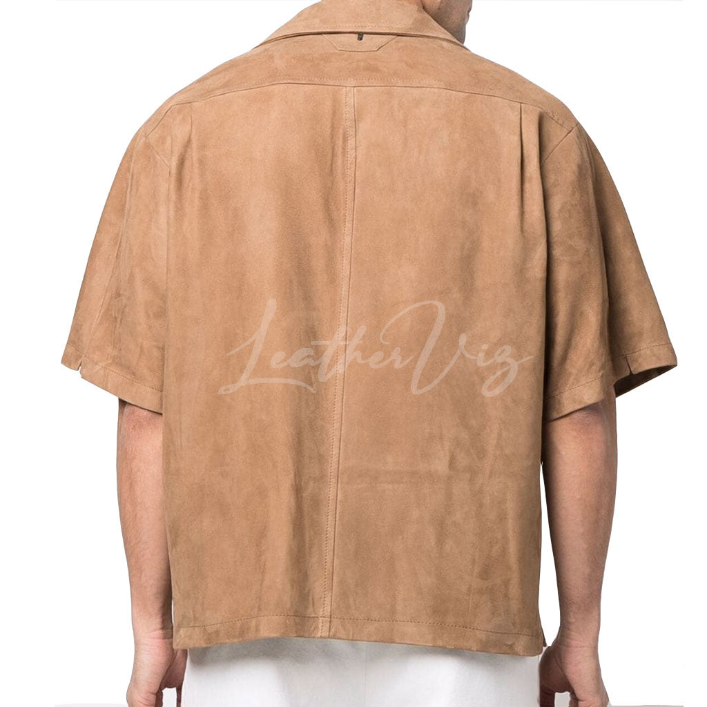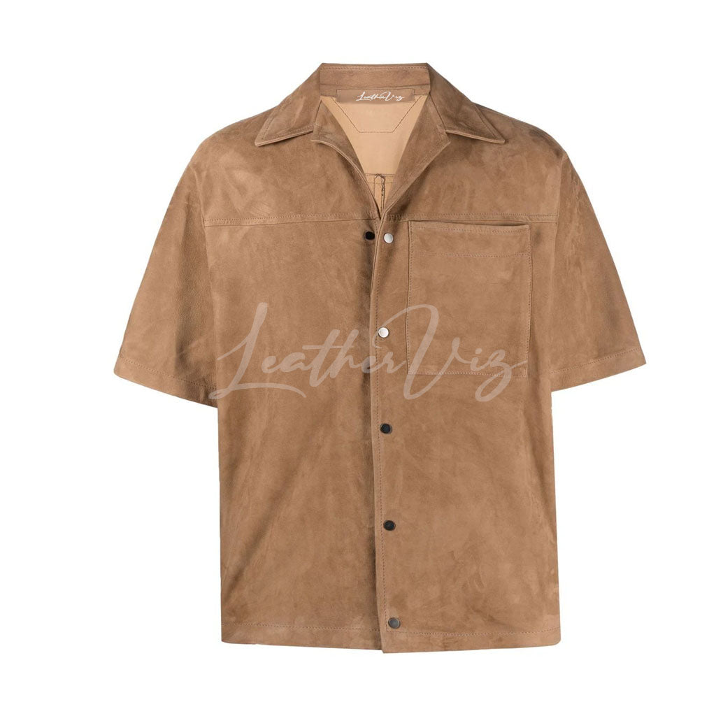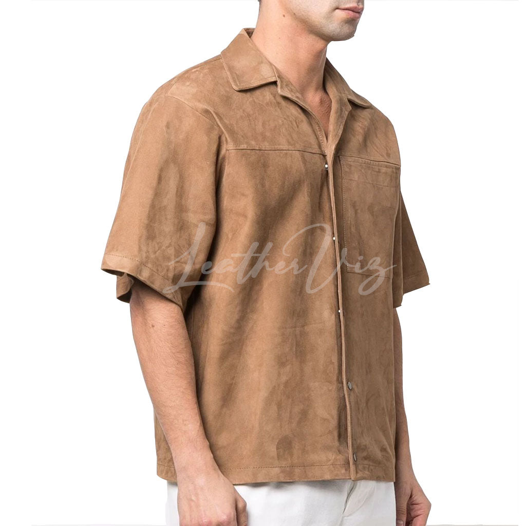SHORT-SLEEVE MEN SUEDE LEATHER SHIRT