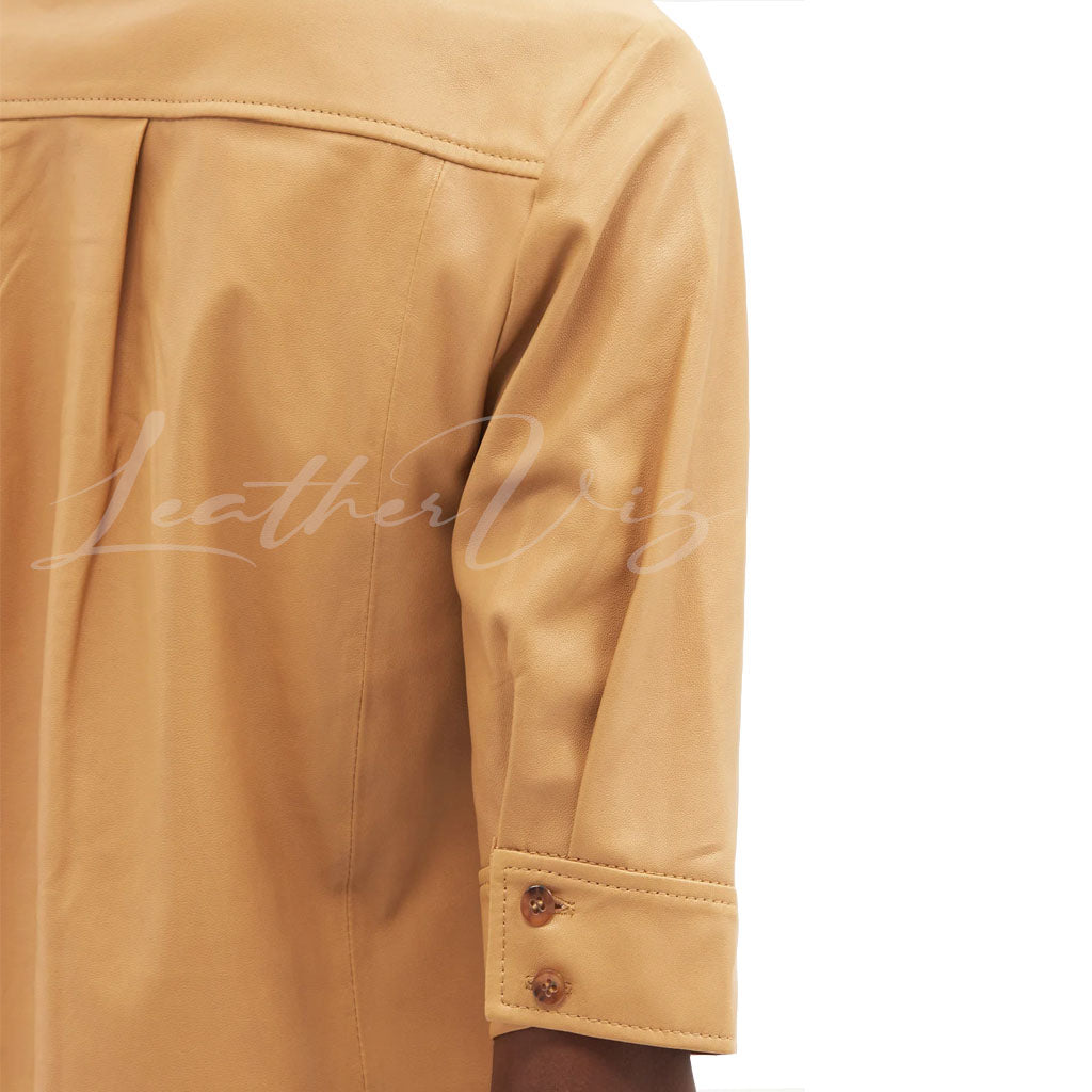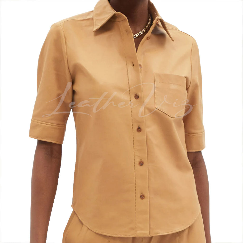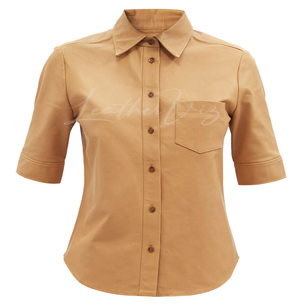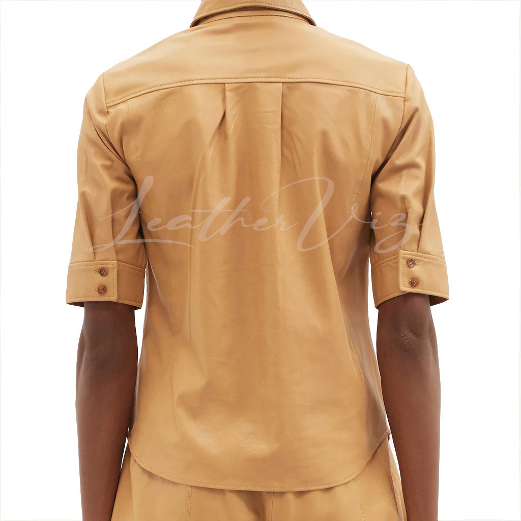 SHORT-SLEEVED WOMEN LEATHER SHIRT