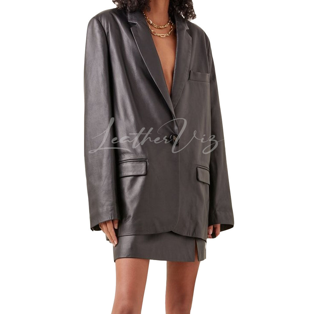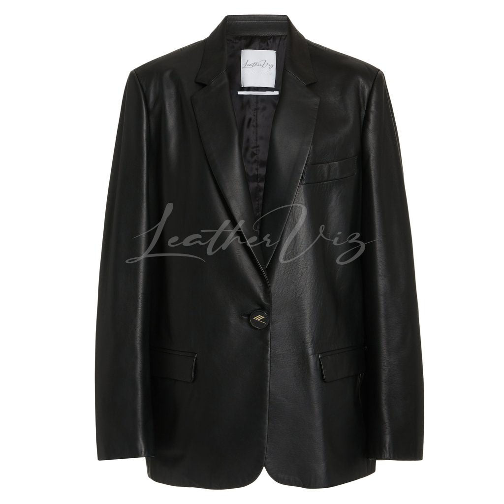SINGLE-BREASTED BLACK WOMEN LEATHER BLAZER