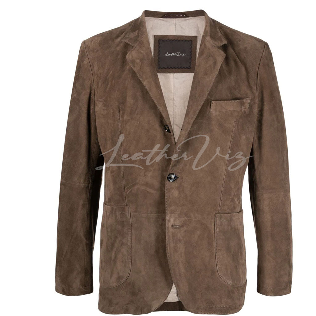 SINGLE-BREASTED SUEDE LEATHER MEN BLAZER