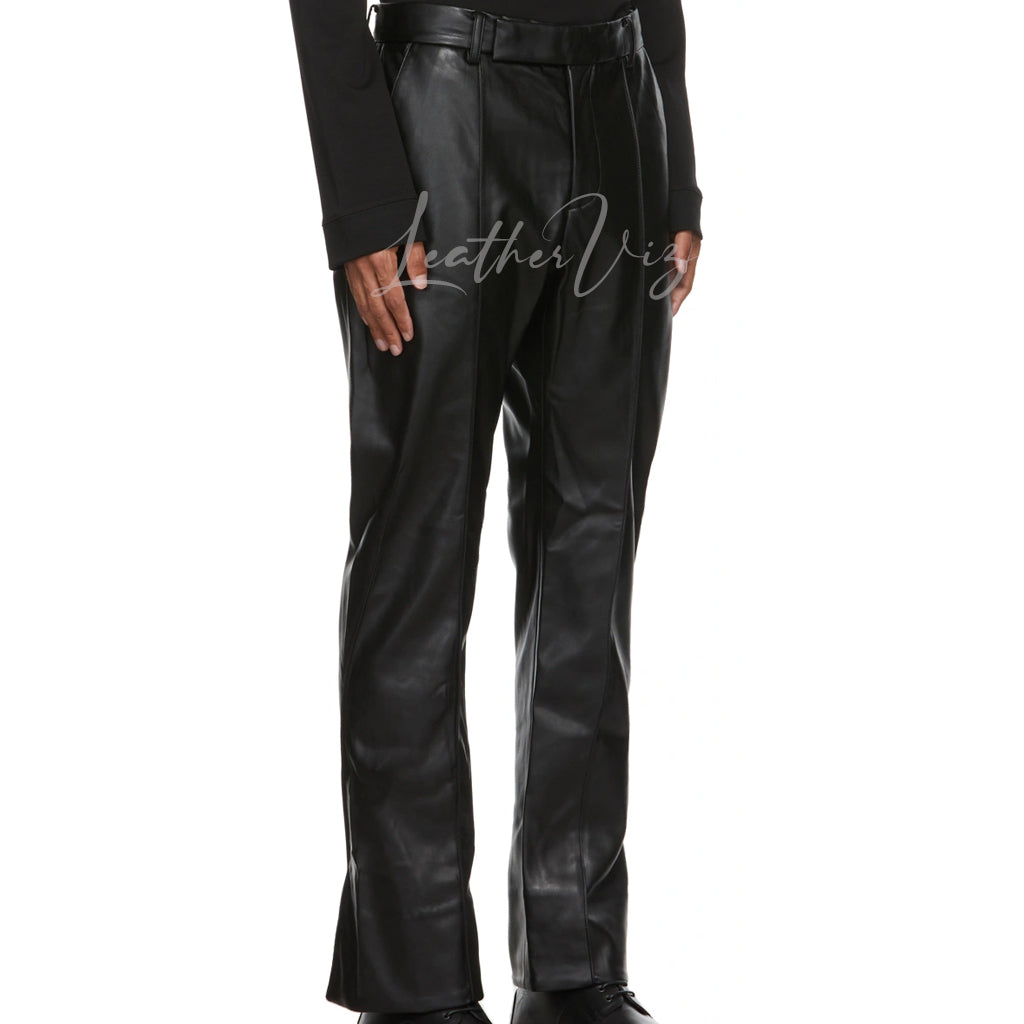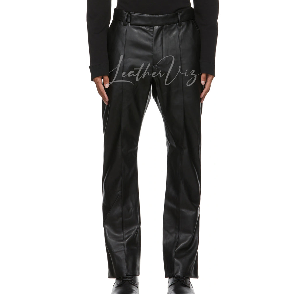 STRAIGHT-LEG BLACK LEATHER TROUSERS FOR MEN