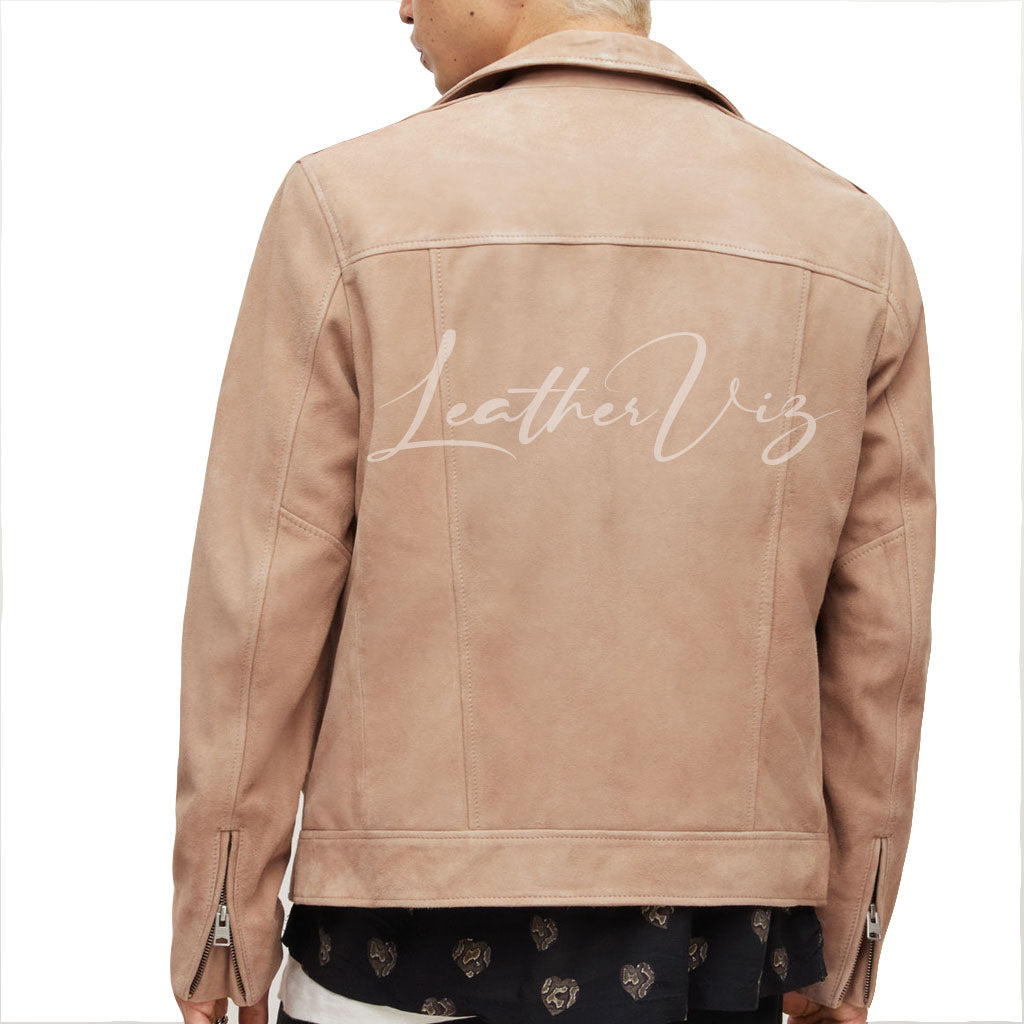 SUEDE LEATHER NOTCH COLLAR BIKER LEATHER JACKET