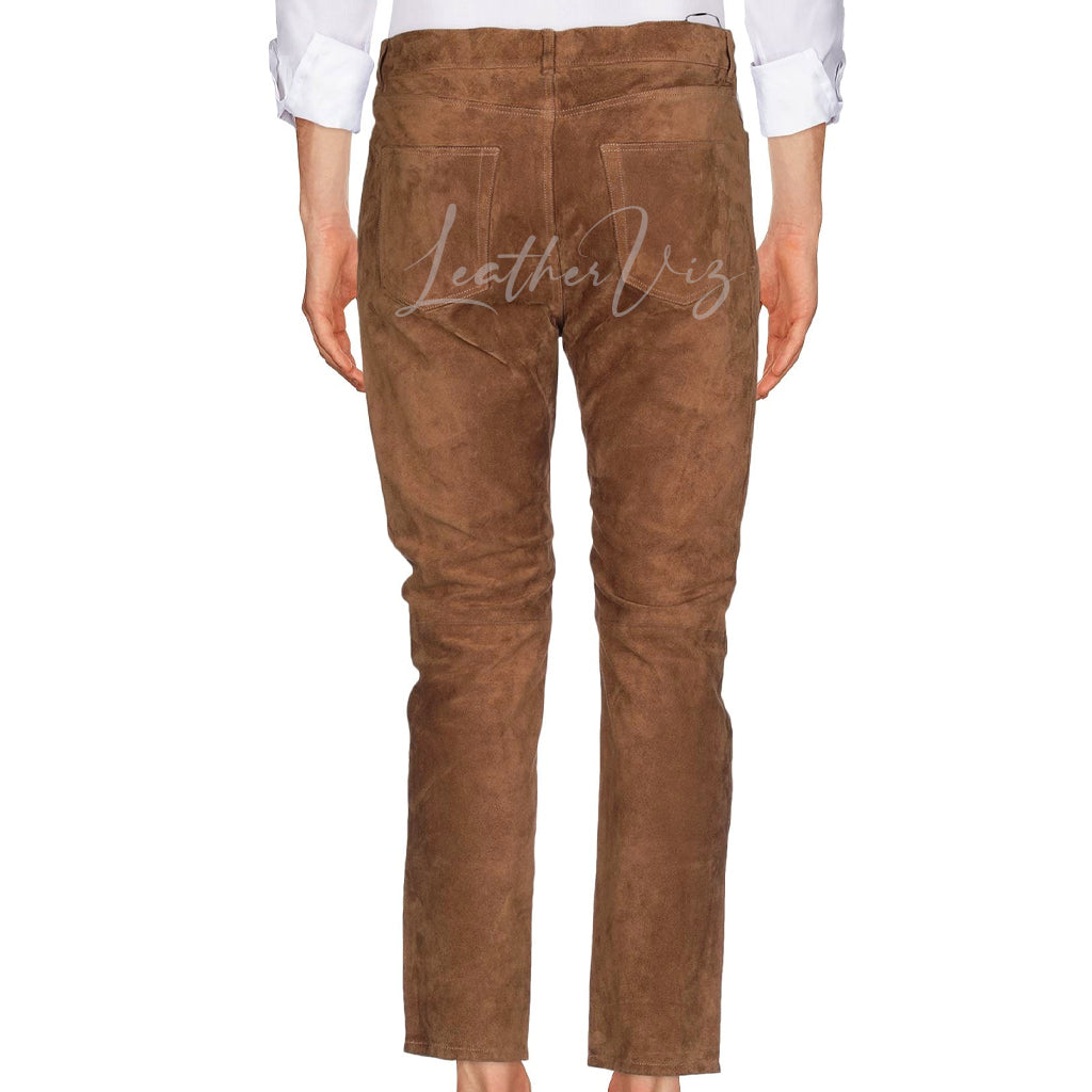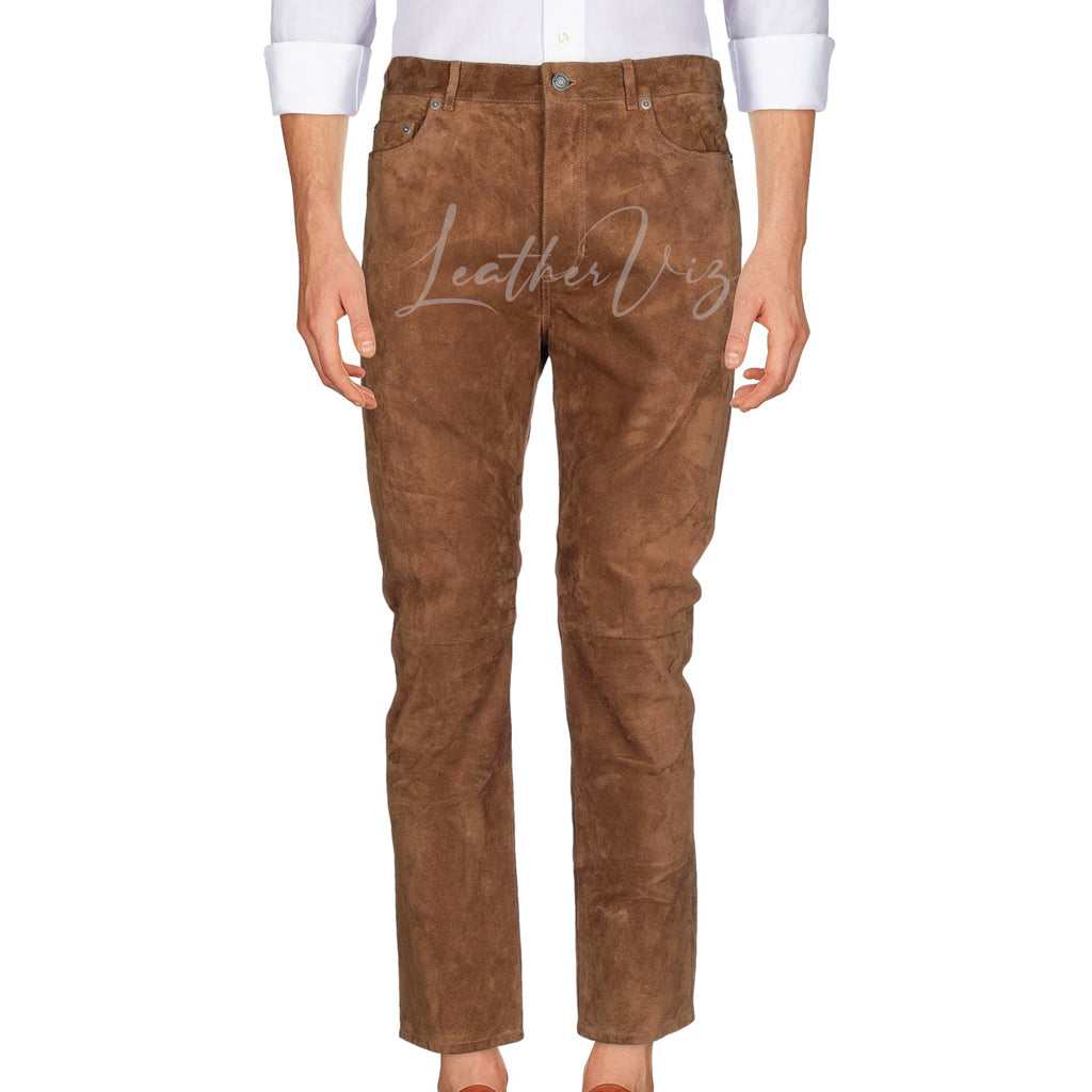 TAPERED LEG SUEDE LEATHER TROUSER FOR MEN