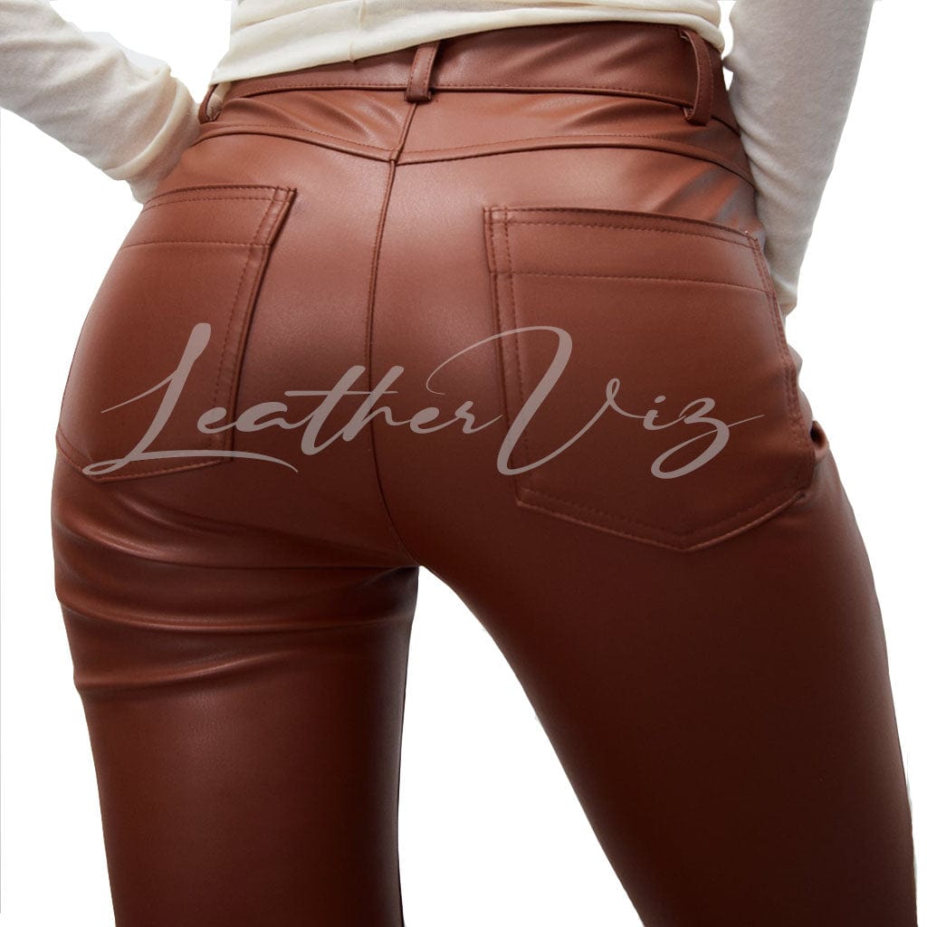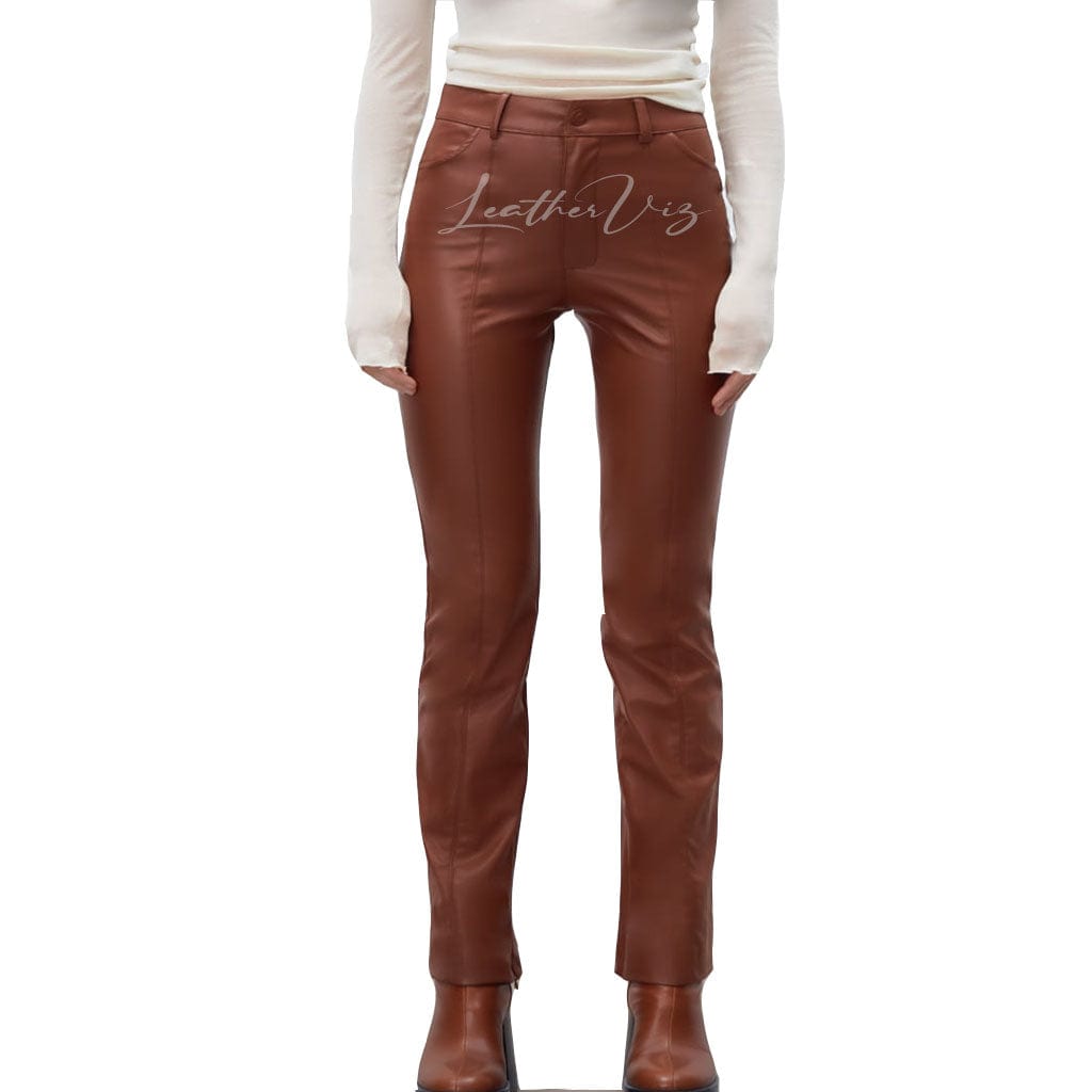 WOMEN CORPORATE STYLE LEATHER TROUSERS WITH ZIPPER HEM